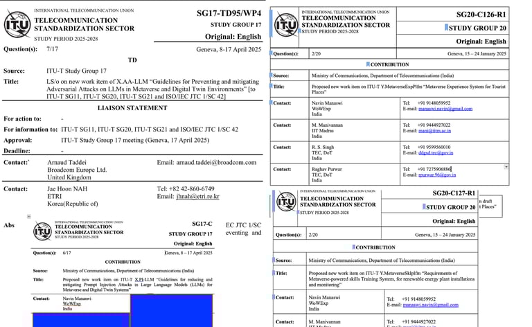 Contributed to SG 20 and SG 17 at ITU-T Geneva