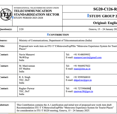 Introduction The tourism industry is undergoing a digital revolution, with Metaverse technologies transforming how people explore destinations. From immersive virtual tours to AI-powered travel guides, the possibilities are endless. However, without global standards, the sector risks fragmentation, inefficiency, and missed opportunities. This is why the recent ITU-T SG 20 recommendation on the Metaverse Experience System for Tourist Places is so important. By defining a unified framework for Metaverse tourism—integrating virtual reality (VR), augmented reality (AR), IoT sensors, and real-time data analytics—this standard ensures seamless, accessible, and engaging experiences for travelers worldwide. But why do we need global standards for Metaverse tourism? Let’s explore. 1. Enhancing Visitor Engagement Through Immersive Experiences Today’s travelers expect more than static brochures or pre-recorded videos—they want interactive, personalized, and immersive experiences. How the Metaverse Tourism System Helps Virtual Tours: Explore destinations in 360° VR before booking a trip. AR Overlays: Get real-time historical facts, translations, or navigation aids while visiting a site. Gamification: Interactive quests and rewards make tourism more engaging. Without global standards, different platforms may use incompatible formats, forcing tourists to juggle multiple apps and devices. A unified system ensures seamless cross-platform experiences. 2. Making Tourism Accessible to All Millions of people face barriers to travel—physical disabilities, financial constraints, or geopolitical restrictions. The Metaverse can democratize tourism by offering virtual access to global landmarks. How Standardization Helps Accessibility Universal Design: Ensures VR/AR experiences are usable for people with disabilities (e.g., audio descriptions for the visually impaired). Low-Bandwidth Solutions: Standardized optimization allows users in developing regions to participate. Cultural Preservation: Digitally archive endangered heritage sites for future generations. A fragmented approach could leave marginalized groups behind. Global standards ensure inclusive tourism for everyone. 3. Boosting Operational Efficiency for Tourism Businesses Hotels, museums, and tour operators struggle with: High marketing costs to attract visitors. Manual ticketing and crowd management. Difficulty in updating visitor information in real time. How the Metaverse-IoT Integration Solves These Issues Smart Ticketing: NFTs or QR codes for seamless entry. Real-Time Analytics: Adjust pricing or crowd flow based on live data. Remote Collaboration: Tourism boards and content creators can co-develop virtual experiences. Standardized systems prevent vendor lock-in and ensure interoperability between different service providers. 4. Supporting Sustainable Tourism Overtourism harms fragile ecosystems and cultural sites. The Metaverse can reduce physical foot traffic while still generating revenue. How Global Standards Promote Sustainability Virtual Alternatives: Offer digital twin experiences for overcrowded destinations. Carbon Footprint Tracking: IoT sensors can measure and optimize tourism’s environmental impact. Eco-Education: Interactive Metaverse experiences can teach sustainable travel practices. Without coordination, some destinations may adopt unsustainable digital tourism models. Global guidelines ensure eco-friendly innovation. 5. Enabling Global Collaboration & Economic Growth Tourism is a trillion-dollar industry, but small businesses and developing nations often lack the tech resources to compete. How Standardization Drives Inclusion Lower Entry Barriers: Shared frameworks reduce development costs for small players. Cross-Border Tourism: A unified Metaverse ecosystem allows seamless international partnerships. New Revenue Streams: Virtual souvenirs, NFT collectibles, and premium VR tours create additional income. Fragmented systems favor big tech monopolies. Global standards ensure fair access and innovation. Conclusion: Why ITU-T’s Recommendation Is a Game-Changer The Metaverse Experience System for Tourist Places sets the foundation for: ✅ Consistent, high-quality virtual tourism experiences ✅ Greater accessibility for underserved travelers ✅ Efficient, sustainable, and profitable tourism operations By adopting global standards, we ensure that the Metaverse enhances—not disrupts—the tourism industry, making travel more engaging, inclusive, and sustainable for future generations. Call to Action Tourism boards, tech developers, and policymakers must collaborate to implement these standards. The future of travel is virtual, interconnected, and boundaryless—let’s build it together. Acknowledgement: This recommendation for Global Standards would NOT have been possible without the strong leadership of Mr. R. S. Singh, Dy. Director General (IoT), TEC, DOT, Ministry of Communications, India, and his dedicated team, who provided continuous guidance throughout the process. I am also deeply grateful to Prof. M. Manivannan and MIPS members What are your thoughts? What do you think? Should every tourist destination have a Metaverse counterpart? Share your thoughts below! #MetaverseTourism #DigitalTransformation #ITU #GlobalStandards #SustainableTourism #VR #AccessibleTravel